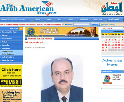 Just over a month later, it is clear that the FBI has learned nothing. The agency is advertising for recruits in the Arab American News, another publication with a long history of support for terrorism, terrorists and terrorist organizations. The current edition has an editorial titled, "Let our people go!," under an ad banner recruiting for the FBI (which also appears on the home page of the website), about accused Iraqi spy Muthanna al-Hanooti, which states:
